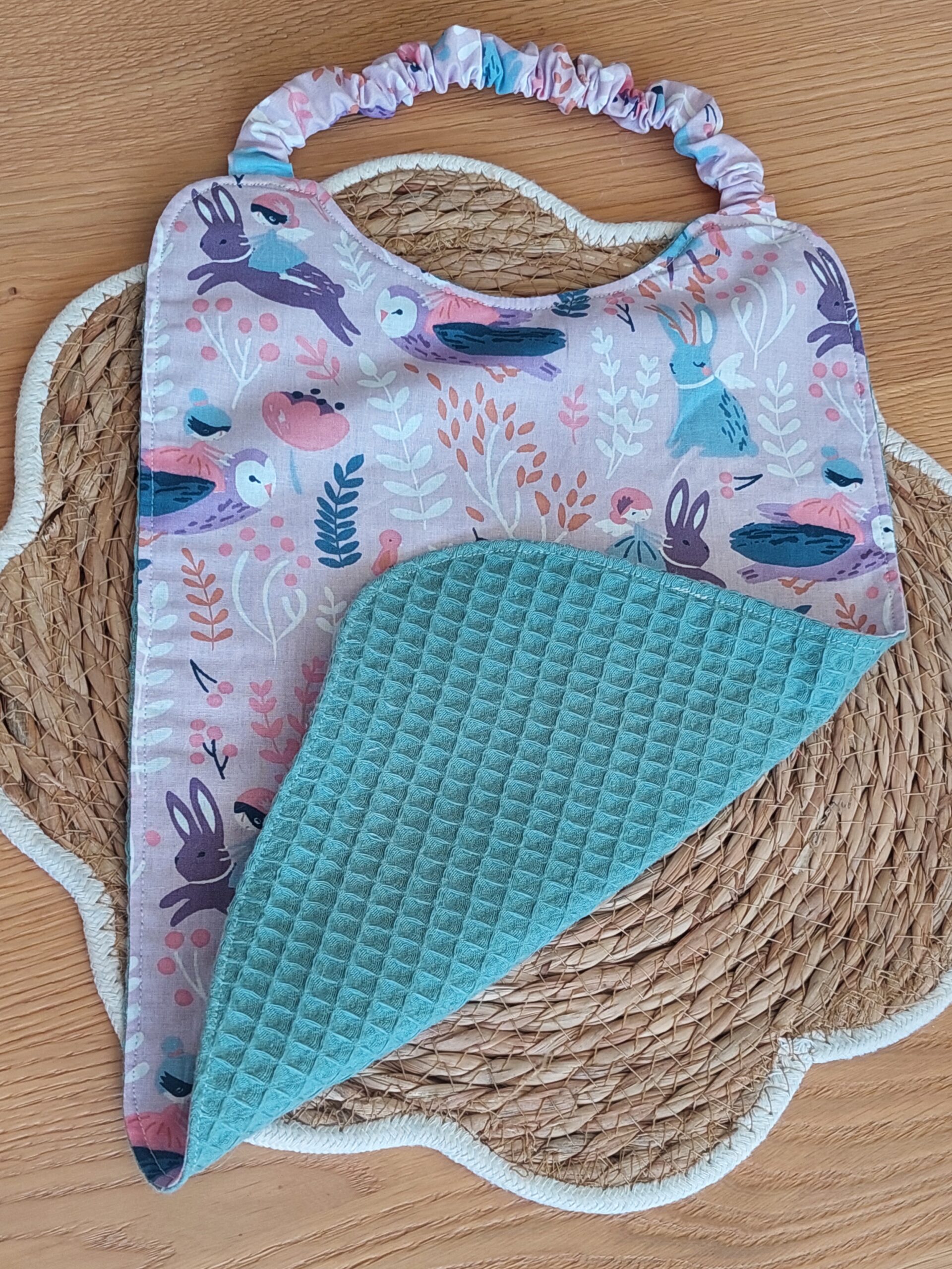 Soyez le premier à laisser votre avis sur “Bavoir maternelle – tissu féérique hiboux / lapins et nid d’abeille bleu”