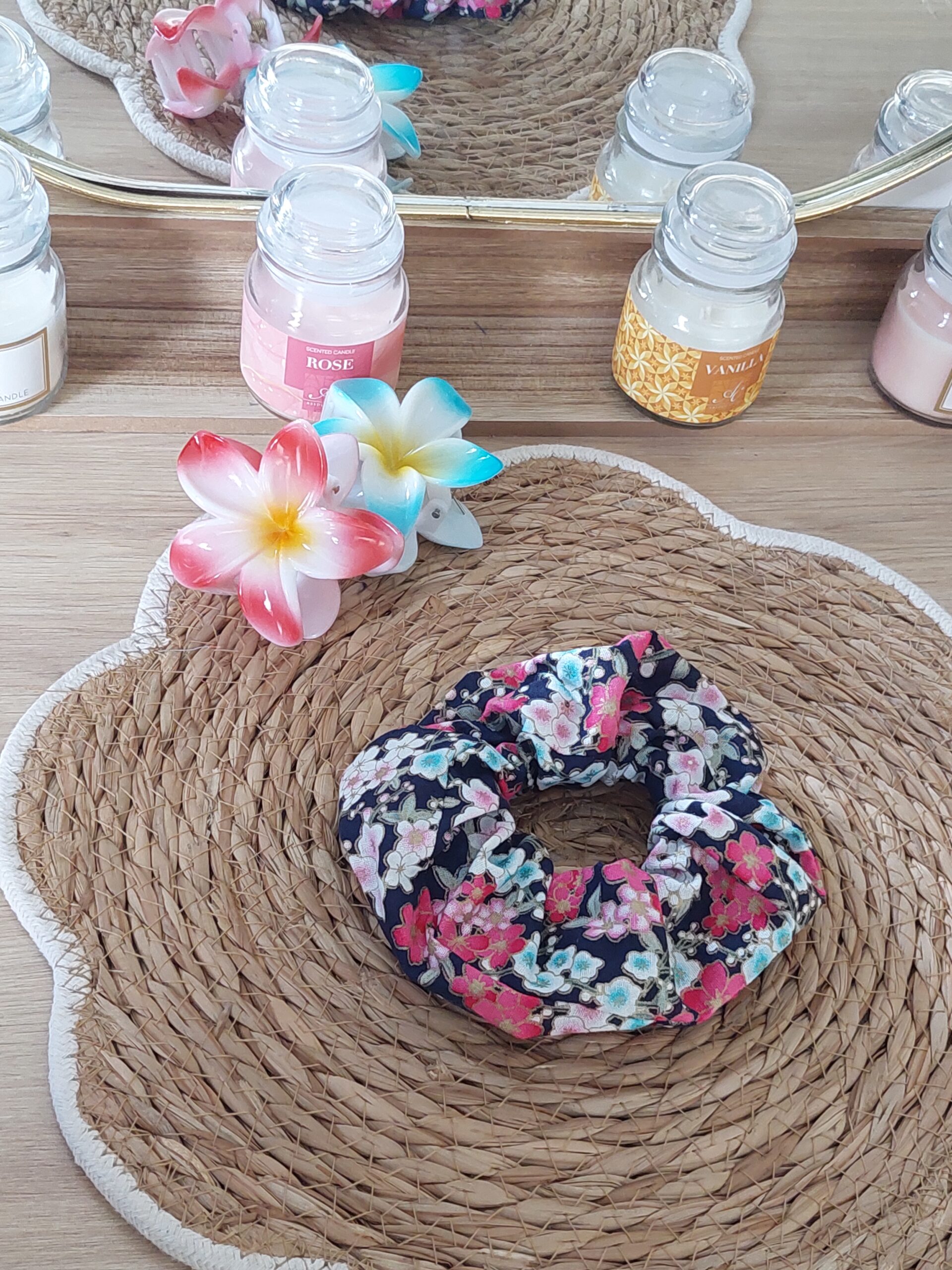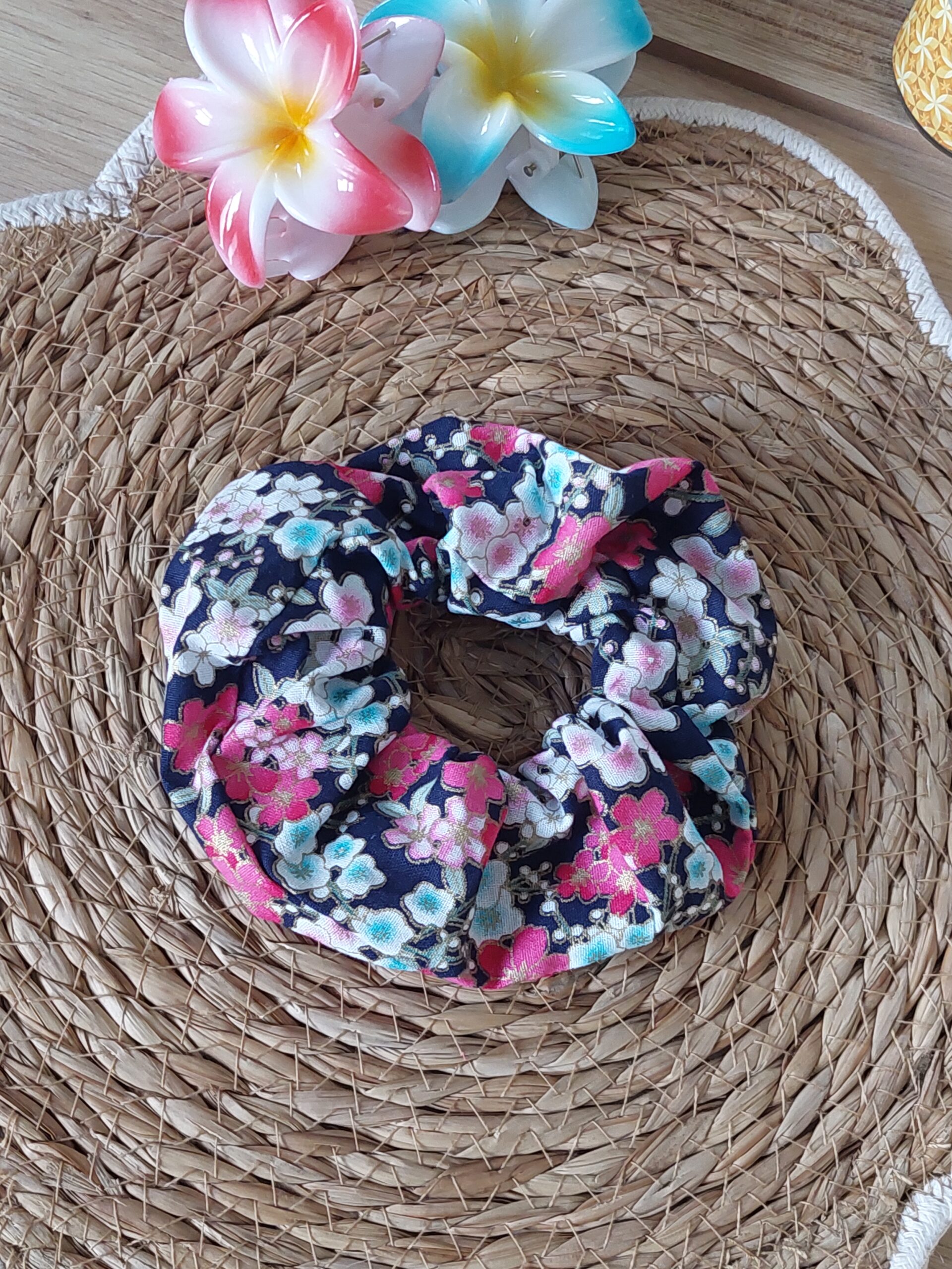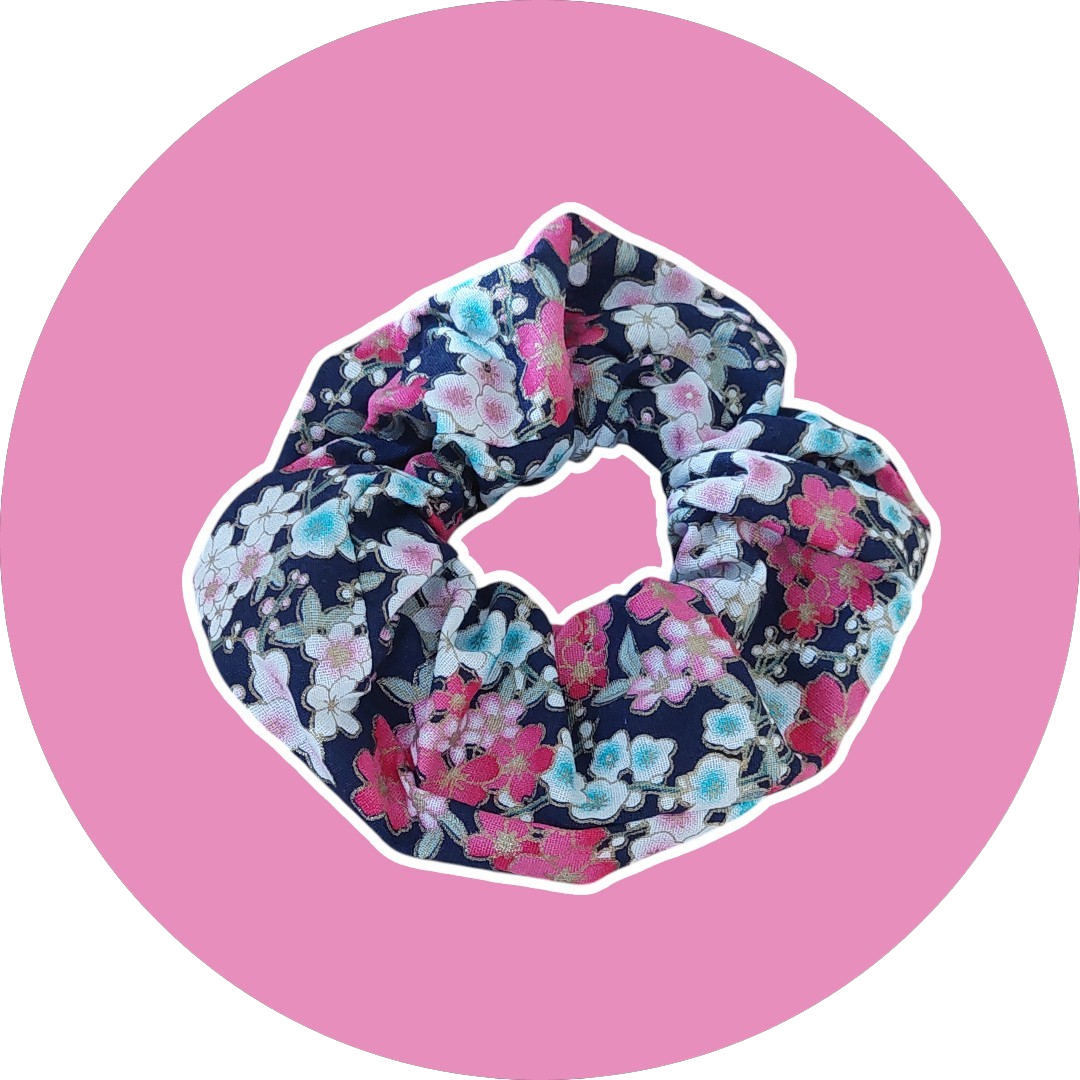 Chouchou XL – noir et fleurs de cerisiers – expédition sous 24h