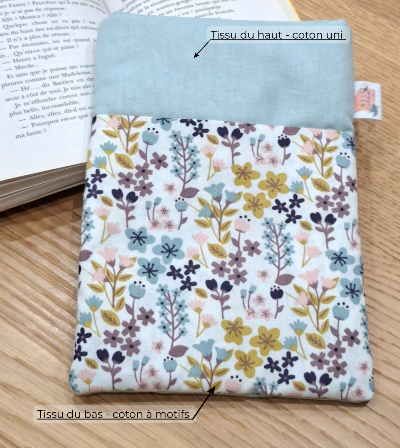 Confectionnée à la main, elle est réalisée en tissu coton, velours côtelé ou sherpa selon votre choix, avec un intérieur doux pour préserver vos livres et écrans des frottements et petits chocs. Sa forme enveloppante permet de maintenir le livre bien en place.