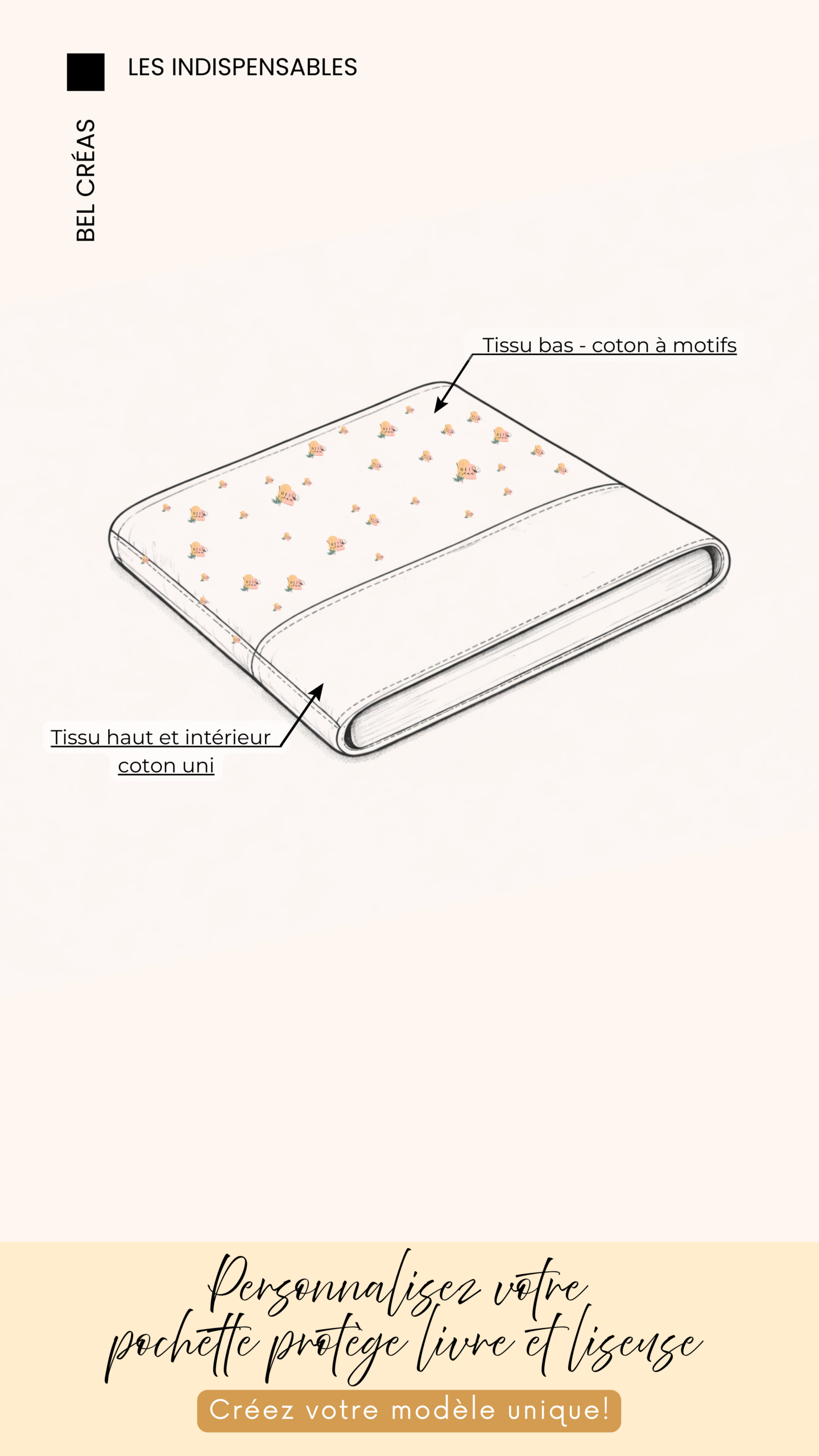 La pochette pour livre de poche et liseuse BEL Créas est conçue pour protéger vos lectures préférées avec élégance et douceur.