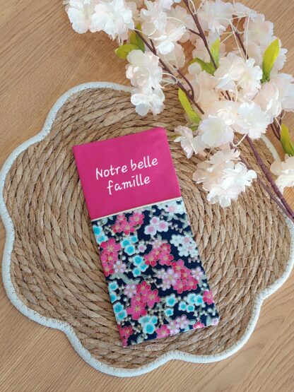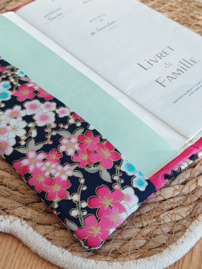 Protège livret de famille – rose et fleurs – personnalisable – expédition sous 24h