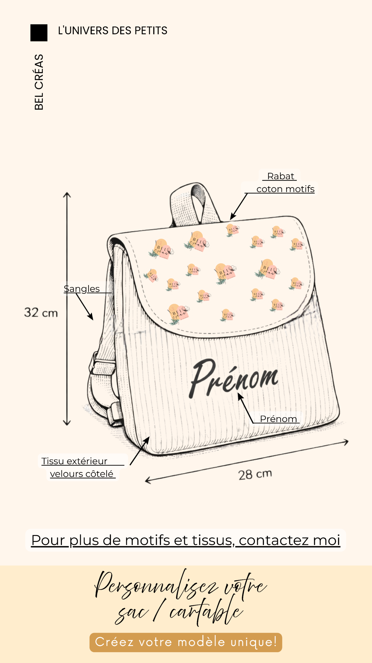 Créez votre sac cartable maternelle ou crèche personnalisé