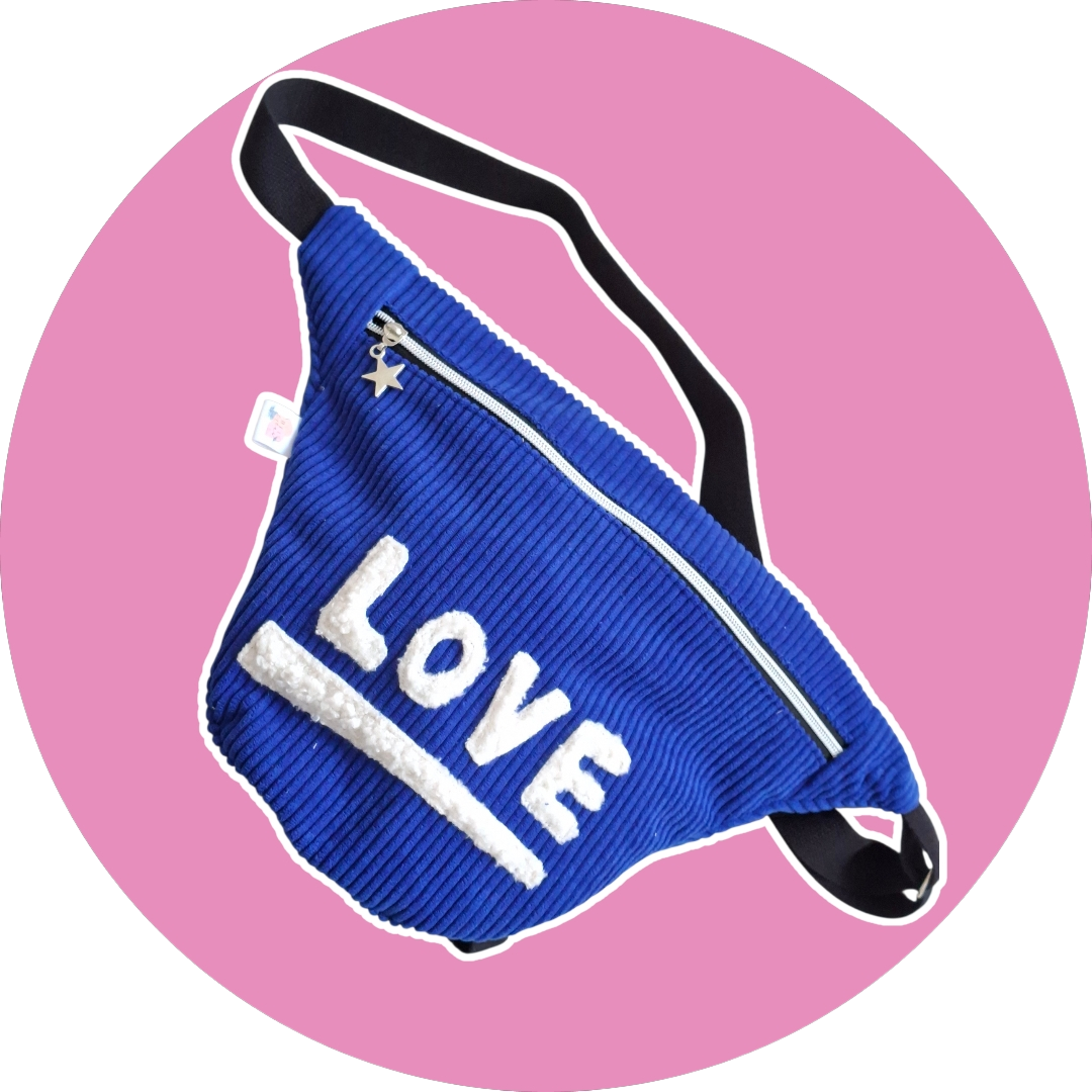 Soyez le premier à laisser votre avis sur “Sac banane LOVE velours côtelé bleu électrique – format XL – expédition sous 24h”